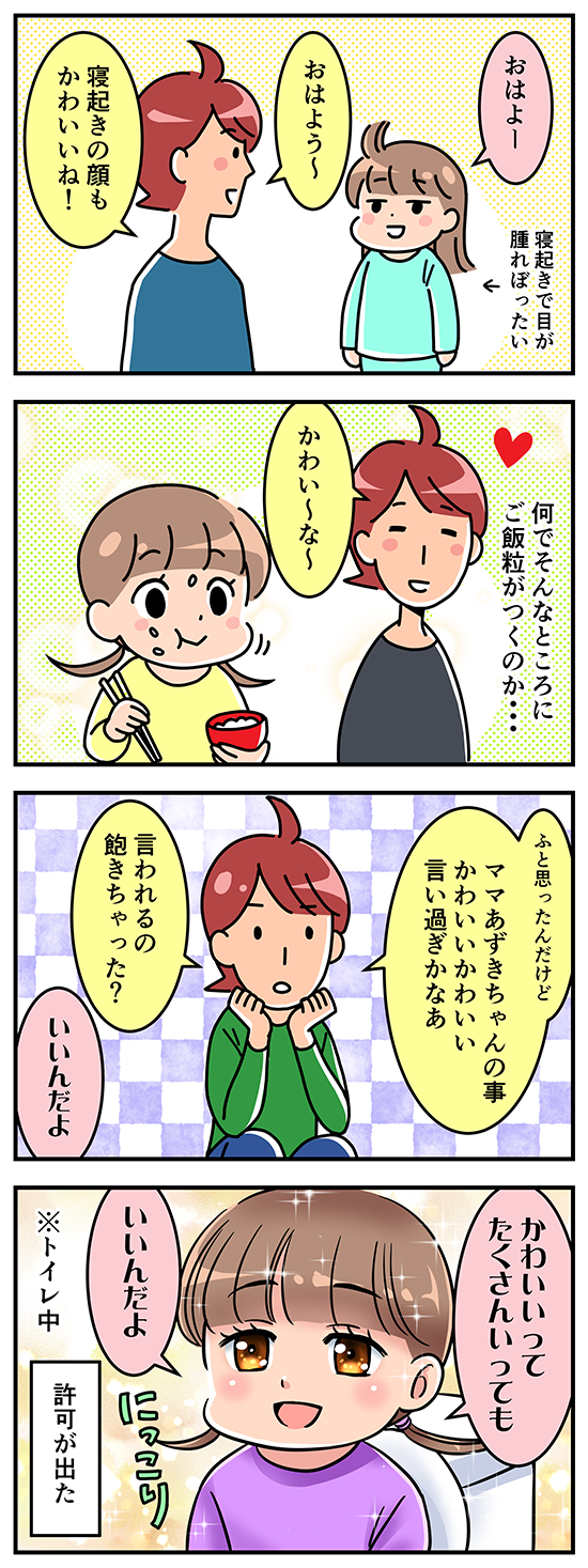 さすがに「もうママかわいいかわいいうるさい!!」とか言われるかな~と思ってたんですけど、