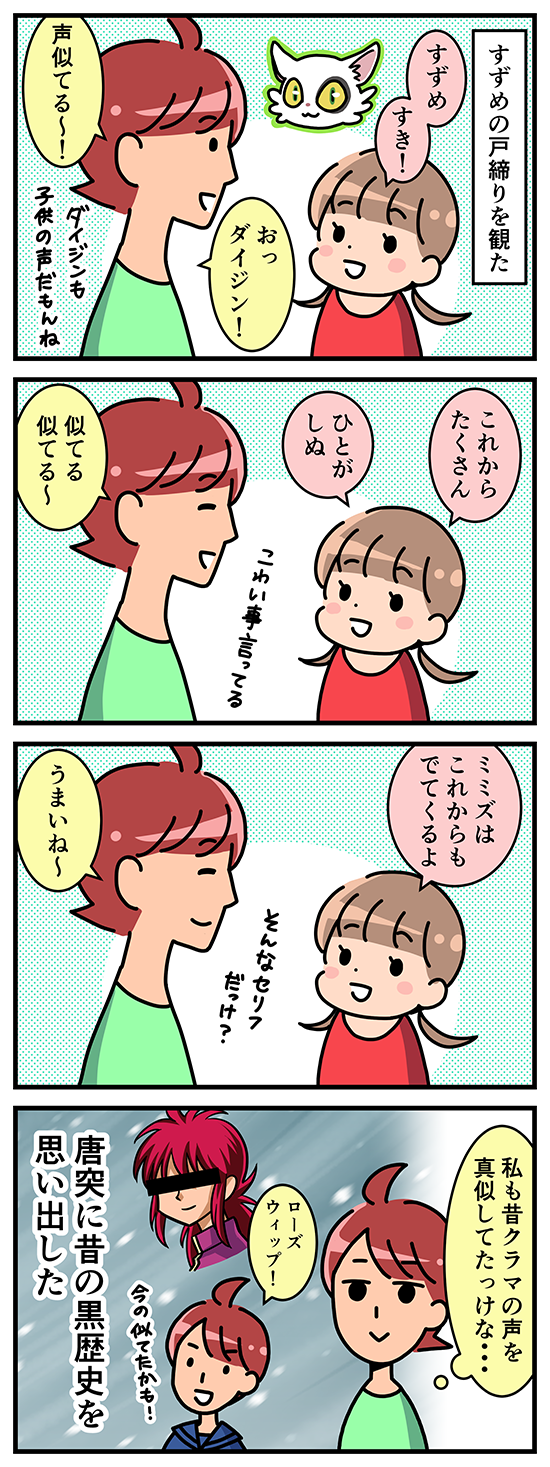 声が低いので、当時は「蔵馬の声できる!」って思ってたんですよね・・・